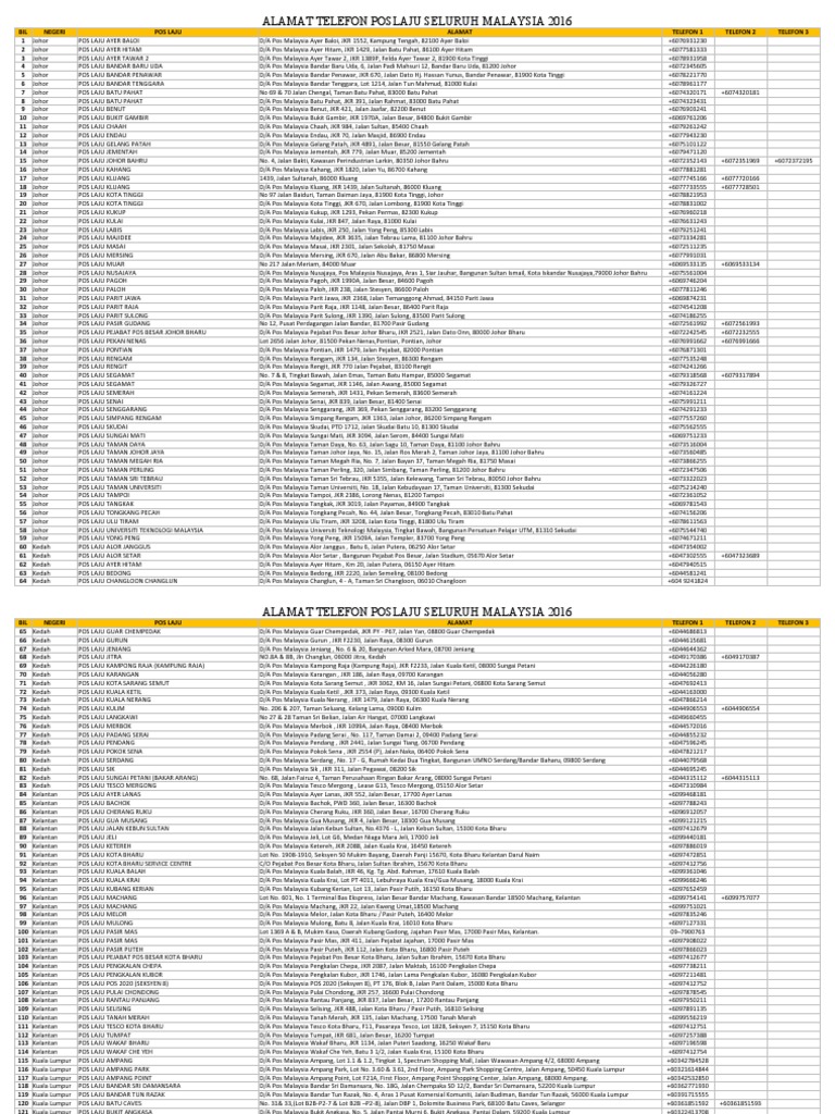 Pejabat Pos Johor Gpo Johor Dato Onn Bil Negeri Pejabat Pos Alamat Hari Waktu Operasi 1 Johor Gpo Pdf Document from demo.vdokumen.net Disahkan di pejabat peguam 2. Kami menyediakan kemudahan chalet penginapan yang selesa buat anda. Pos malaysia parit sulong jkr 1390, jalan sulong parit sulong 83500 johor. Managing your f&b outlet, understand your customers. Lhdn untuk mati setem 3: Banjir kilat itu yang kedua dalam tempoh seminggu dan semalam adalah terburuk sehingga pejabat daerah membuat persediaan membuka pusat pemindahan di kompleks penghulu, sekawan desa dan bagan. This is default featured post 2 title. Sejarah parit sulong, simpang kiri, batu pahat, jo.