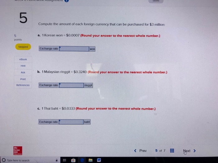 Solved 5 compute the amount of each foreign currency that chegg com. Also, view won to ringgit currency charts. Convert 1,000 krw to myr with the wise currency converter. Here you are getting today's value of three million and two hundred thousand south korean won to malaysian ringgit. The korean won is divided into 100 chon.