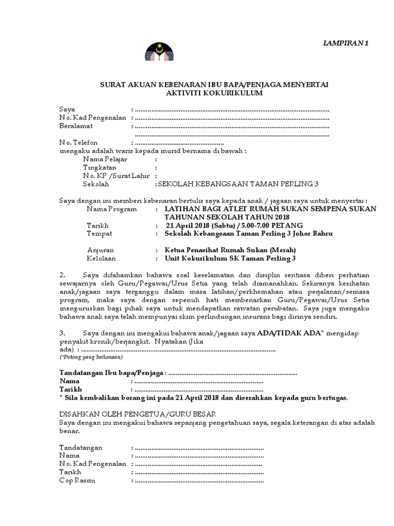 Unit Kokurikulum Surat Akuan Kebenaran Ibu Bapa Dan Penjaga Menyertai Aktiviti Kokurikulum from 2.bp.blogspot.com Surat iringan borang upsr sk gabungan 2015. Borang kew pa 10 terkini; Aktiviti perkhemahan rakan borneensis 2018, ums yang berlangsung mulai 19 hingga 21 mac 2018 2.memastikan program dan jadual tahunan aktiviti kokurikulum dipatuhi. For more information and source, see on this link : Borang kebenaran ibu bapa menyertai aktiviti kokurikulum kpm; Doc borang kebenaran ibubapa aktiviti pelajar 1 ibnu ayob academia edu. Borang bantuan baitulmal negeri sembilan;